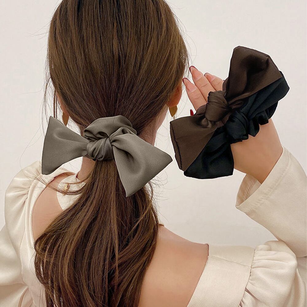 光沢感のあるサテンのような生地、上品なロングシュシュです。
