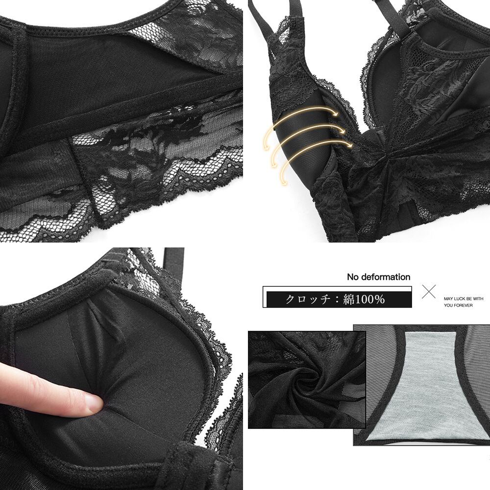 花柄刺しゅうレースランジェリーセット 胸元セクシー ノンワイヤーレースブラ ブラジャーショーツ フェミニン 美胸盛りブラ