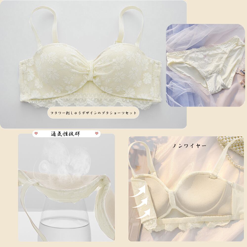 ブラジャーショーツ上下セット レディース 盛れる脇高インナー 谷間ブラ ショーツ 小胸下着セット 脇スッキリ ブラセット