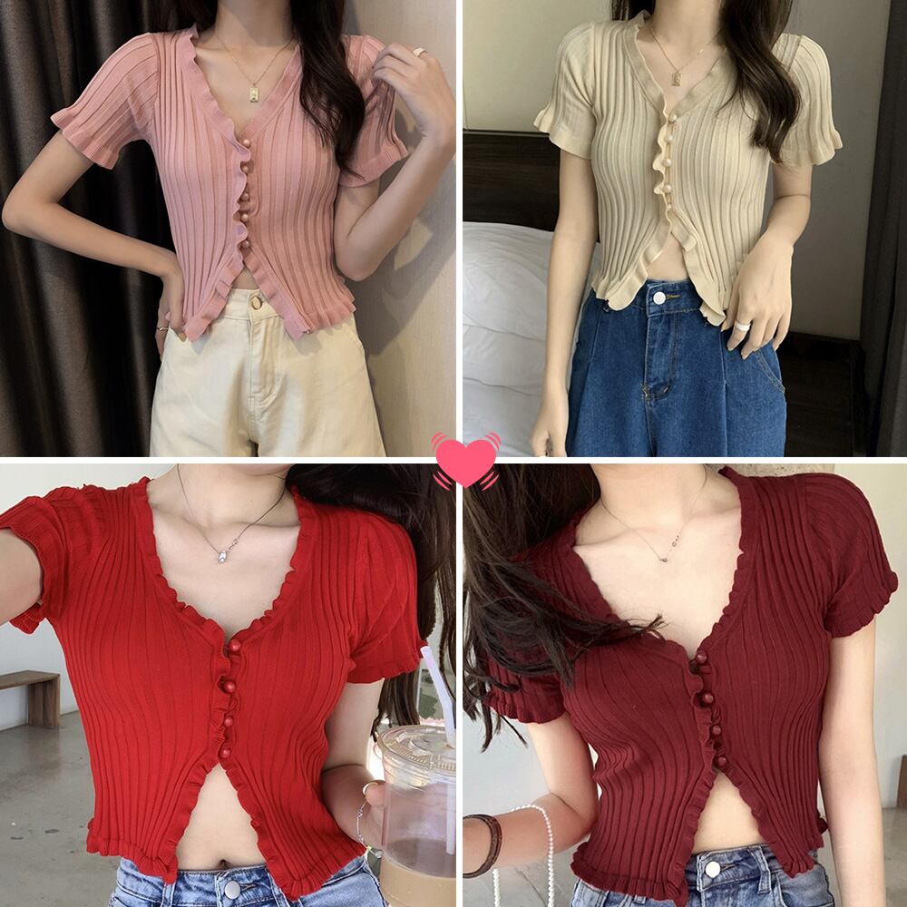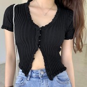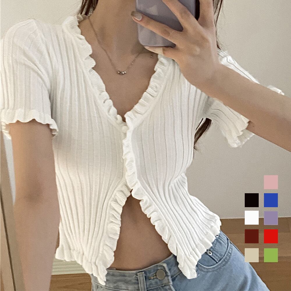 サマーニット セクシー クロップド丈 半袖ニット 大人可愛い 太めリブ ニットトップスお洒落 セクシー 韓国ファッション