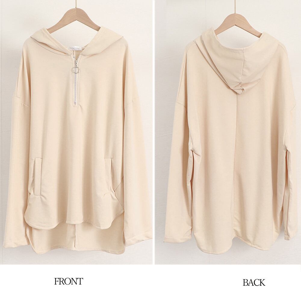 ハーフジップパーカー サイドスリット