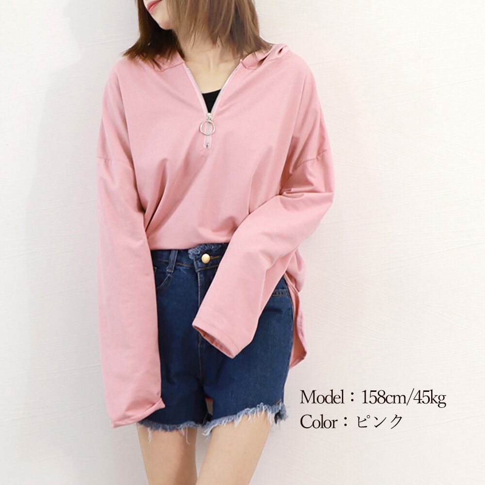 ゆったり パーカー カジュアルトップス チュニック ロンT