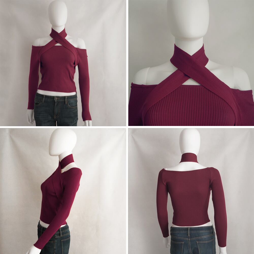 ホルターネック 肩出し セクシー ニットトップス 大人カジュアル 韓国ファッション 着やせ 春秋冬 鎖骨見せ 長袖