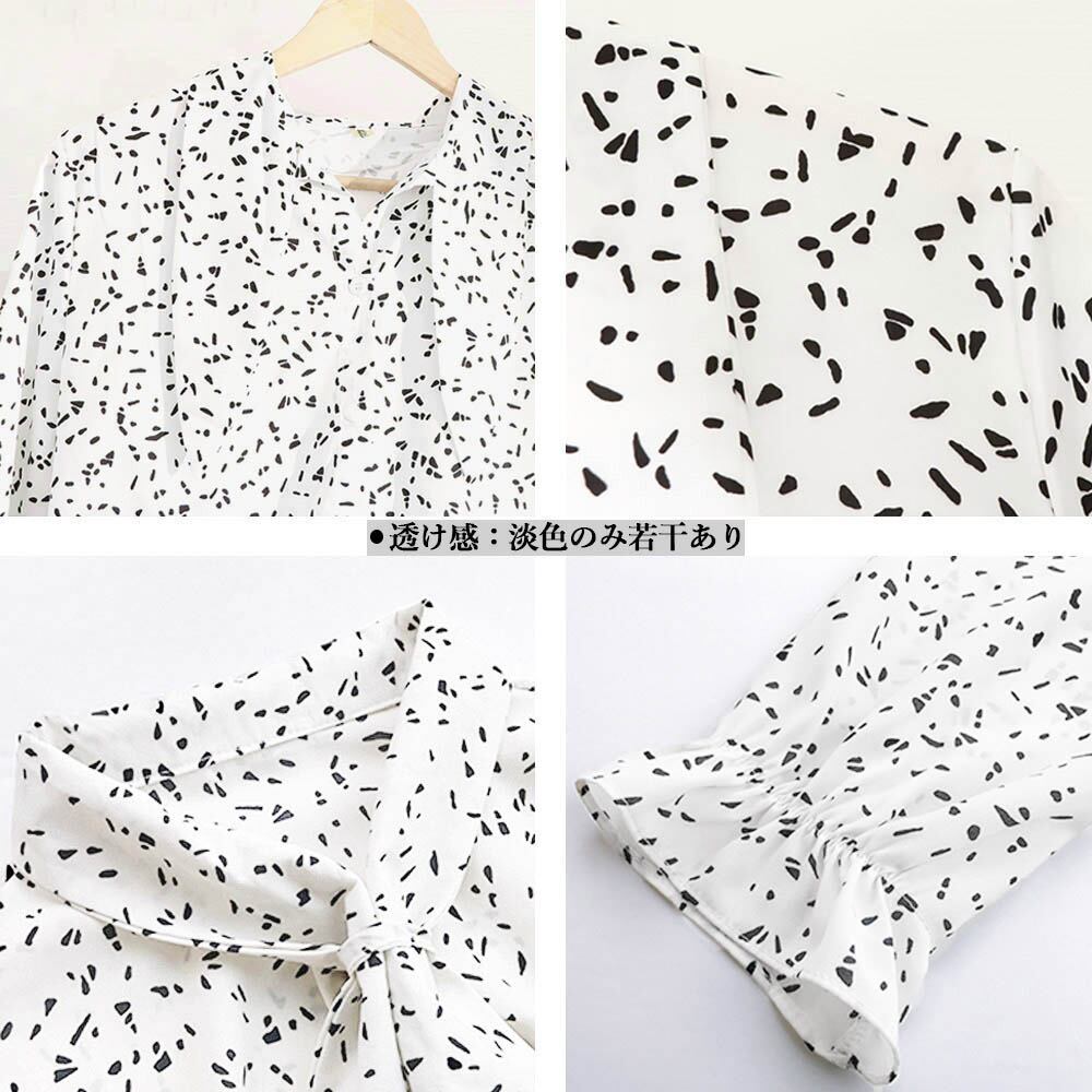 上品 オフィスブラウス 大人 長袖 シャツ 春秋 新作 プリント ゆったり 袖パフスリーブ フリル リボンタイブラウス