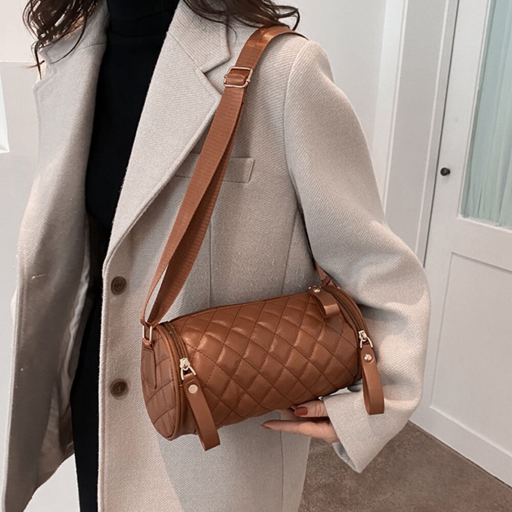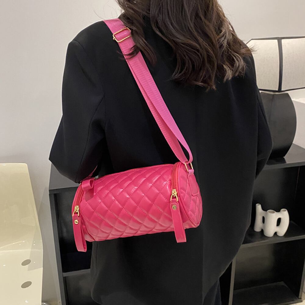 ショルダーバッグ 両サイドファスナーポケット 2way ドラムバッグ 韓国風 ロールバッグ おしゃれ PUレザー