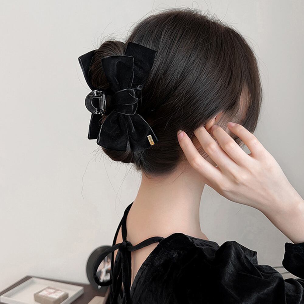 ヘアアクセサリー お洒落 リボン ベルベット シンプル ハーフアップ ヘアクリップ レディース 女性 髪留め おしゃれ