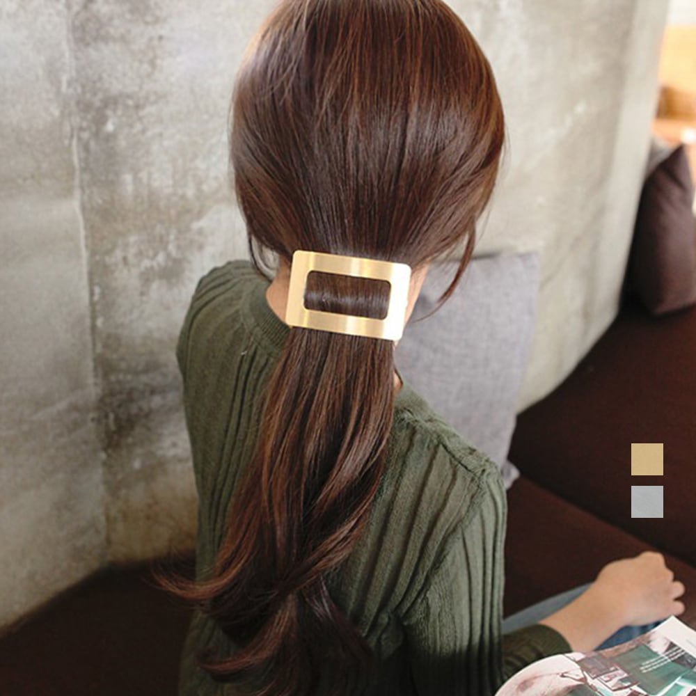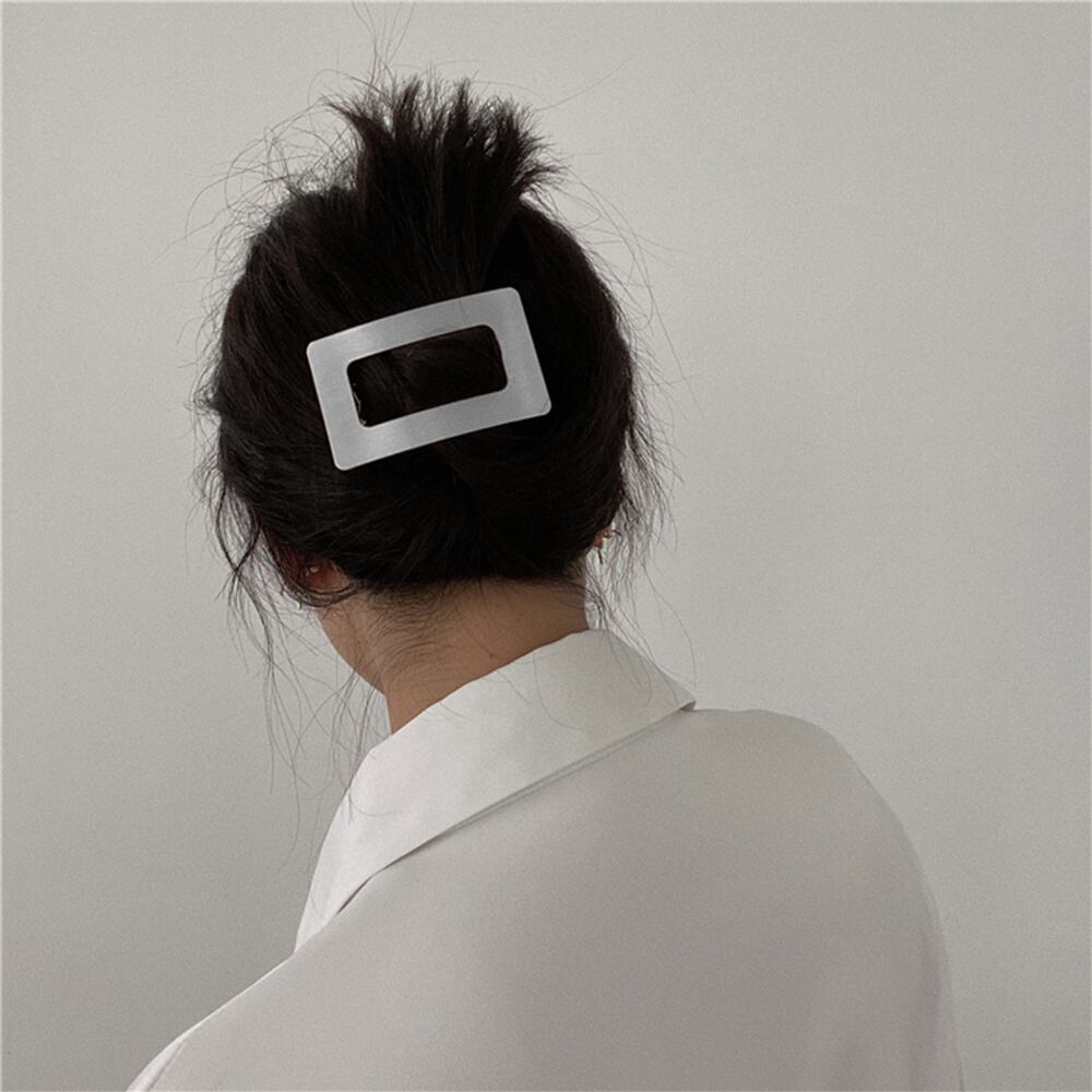 スクエア型でアクセントになるサイズは、さっとまとめて留めるだけでモードな印象をプラス