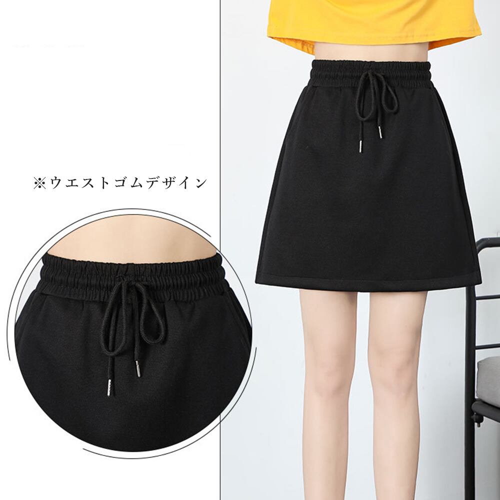 レディース ウエストゴム ミニスカート カジュアル Aラインスカート ハイウエストイージースカート ポケット付きボトムス