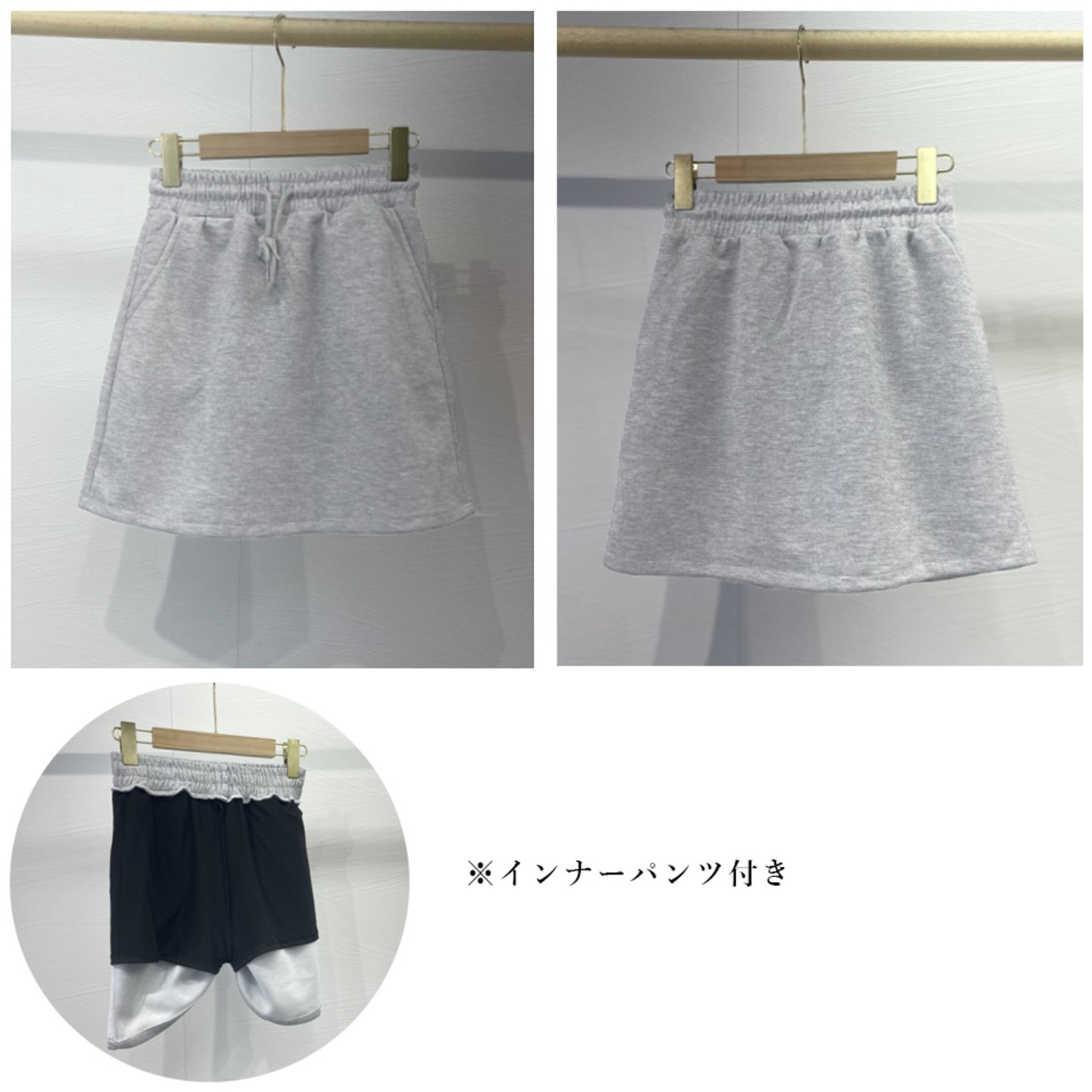 [L]スカート丈:約42cm 裏地丈:約31cm ウエスト:約64-94cm(ゴム仕様) ヒップ:約92cm もも周り:約50-80cm