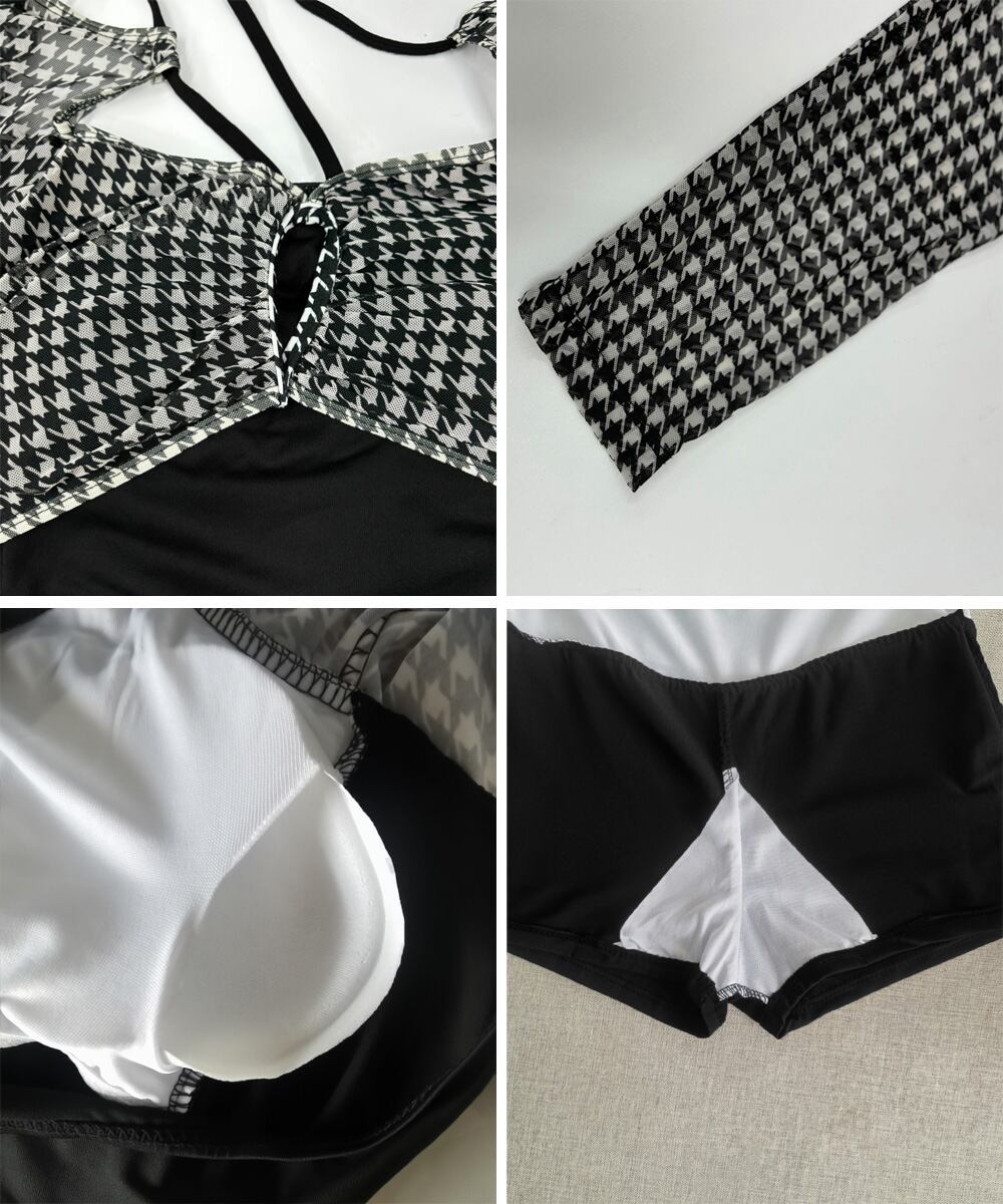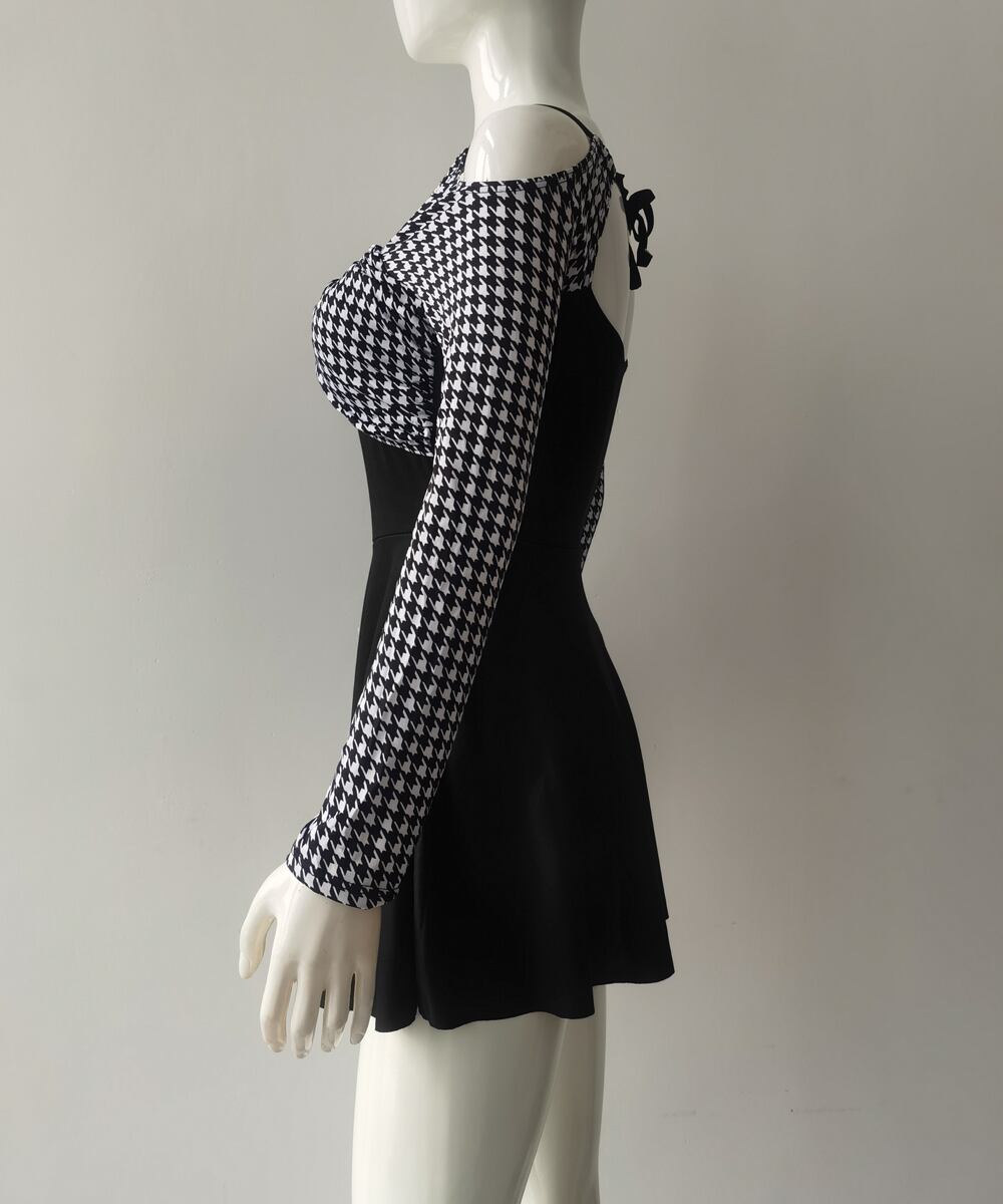 千鳥柄と無地の切り替えがクラシカルな印象のワンピース水着