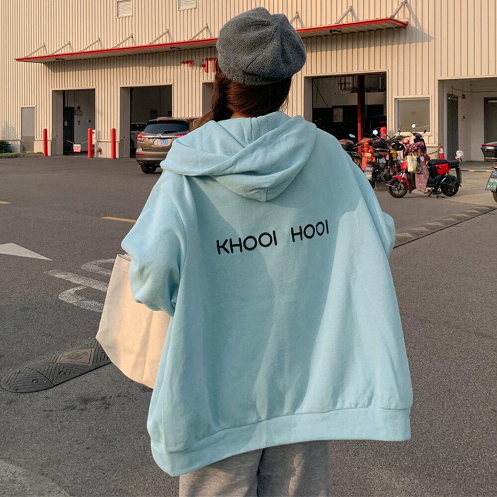 薄手 ゆったり フード付きアウター 体型カバー BF風フーディー カジュアルトップス ロゴZIPパーカー 韓国羽織り長袖