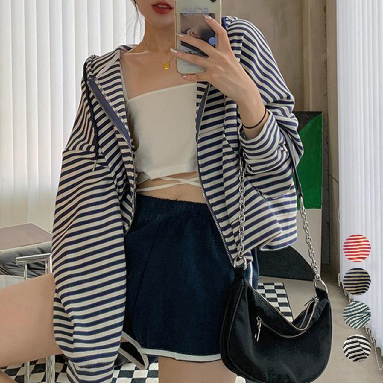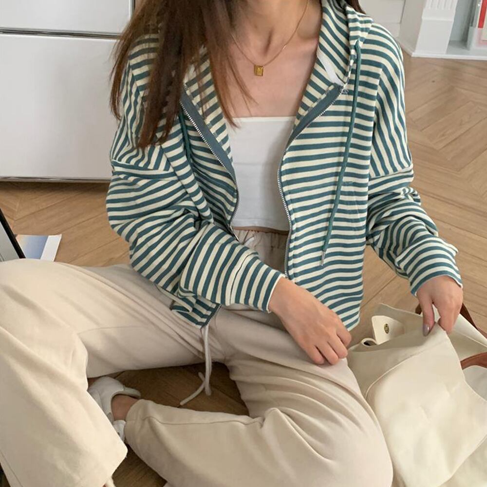ボーダー柄フルジップパーカー レディース