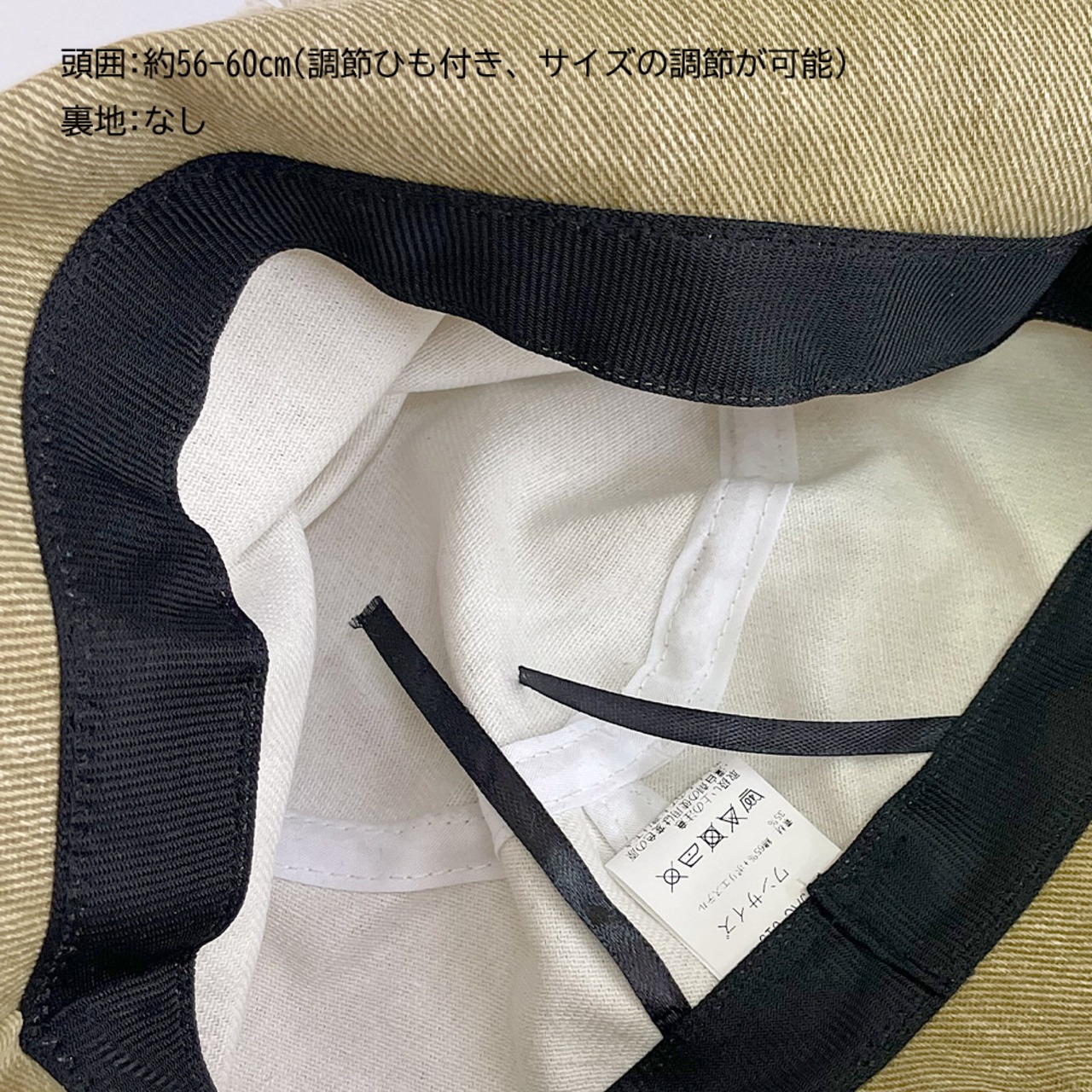 頭囲:約56~60cm(調節ひも付き、サイズの調節が可能)