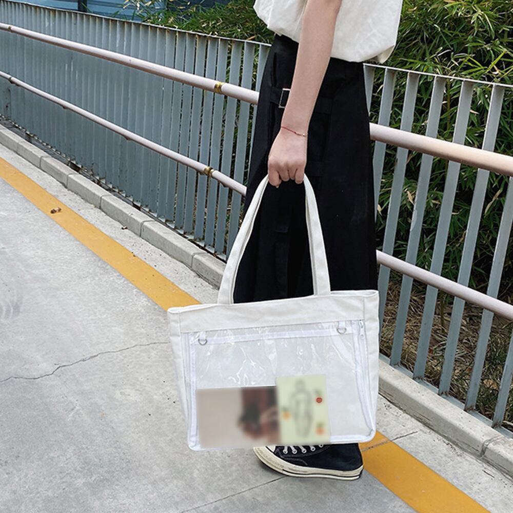 キャンバストート黒 痛バッグ ビニール 帆布かばん 手提げ