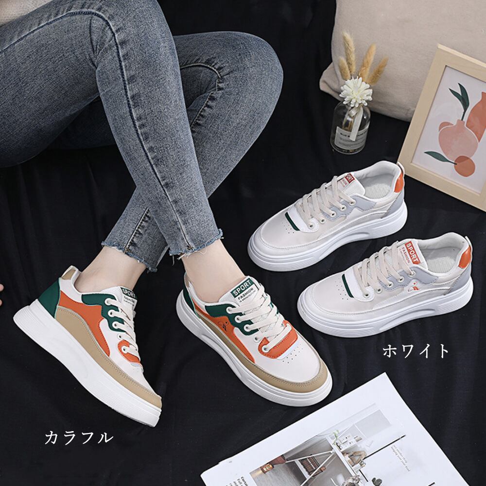 可愛い カジュアル PUレザー 厚底スニーカー おしゃれ レースアップ フラットシューズ 歩きやすい靴 ボリュームソール
