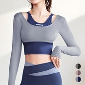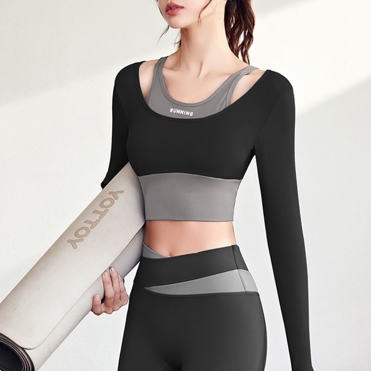 レディース オシャレ 指穴付き ランニング服 バイカラー無地ジムウェア 楽ちん フィットネス 運動着 韓国 ピラティス服