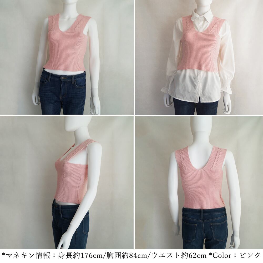レディース ノースリーブ ショート丈トップス Vネック 重ね着 リブニット 韓国ファッション ニットベスト 通勤通学