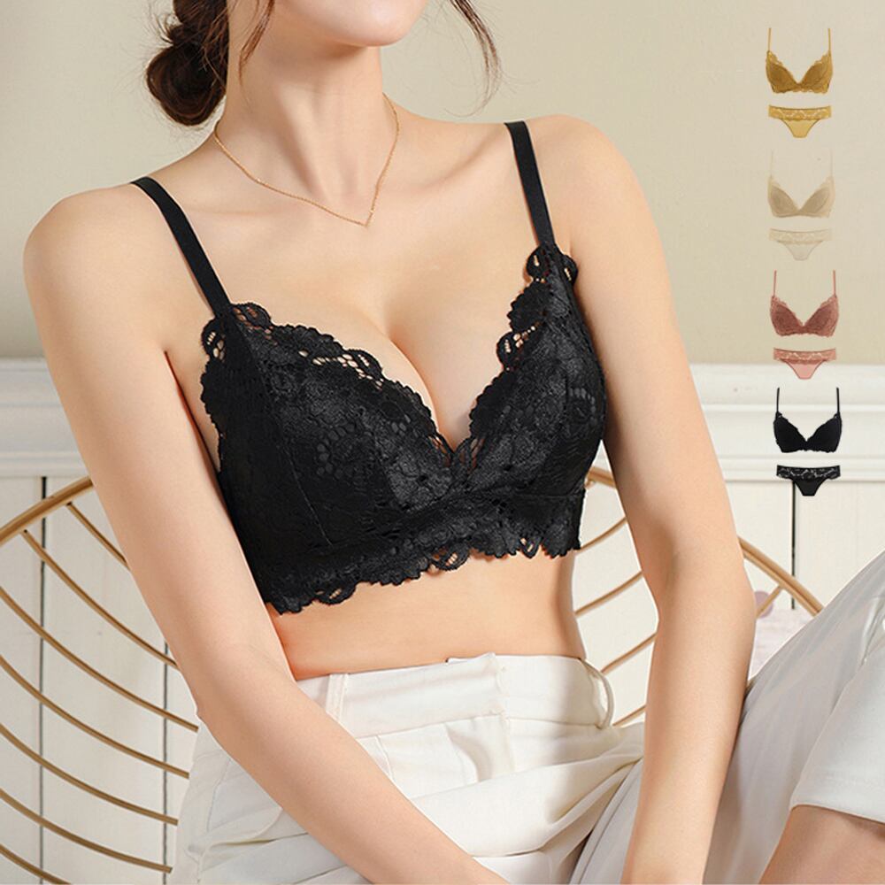 可愛い 総レース ノンワイヤー ブラジャー ショーツ 2点セット 谷間 ワイヤレス ブラショーツ 上下セット脇スッキリ