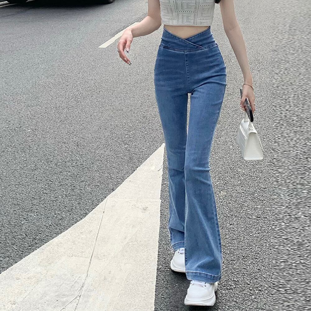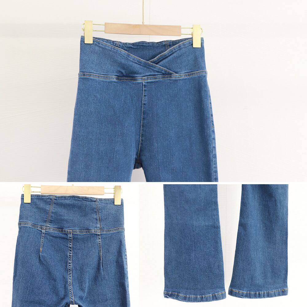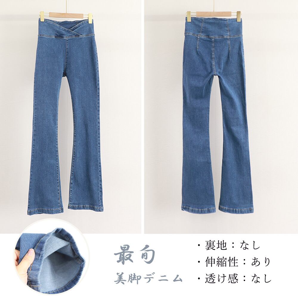 デニムセミフレアパンツハイウエストクロス
