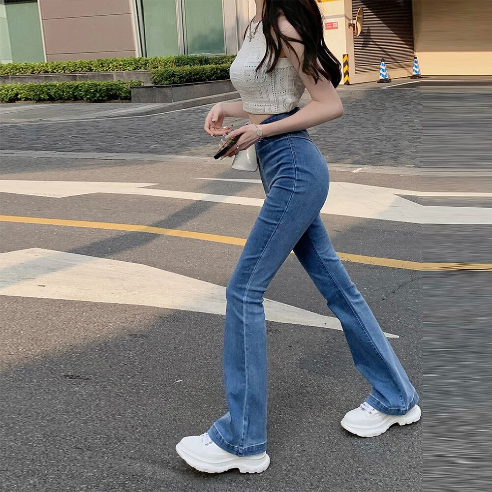 最旬美脚デニム韓国 タイトデニム高見え 細見えデニムパンツ