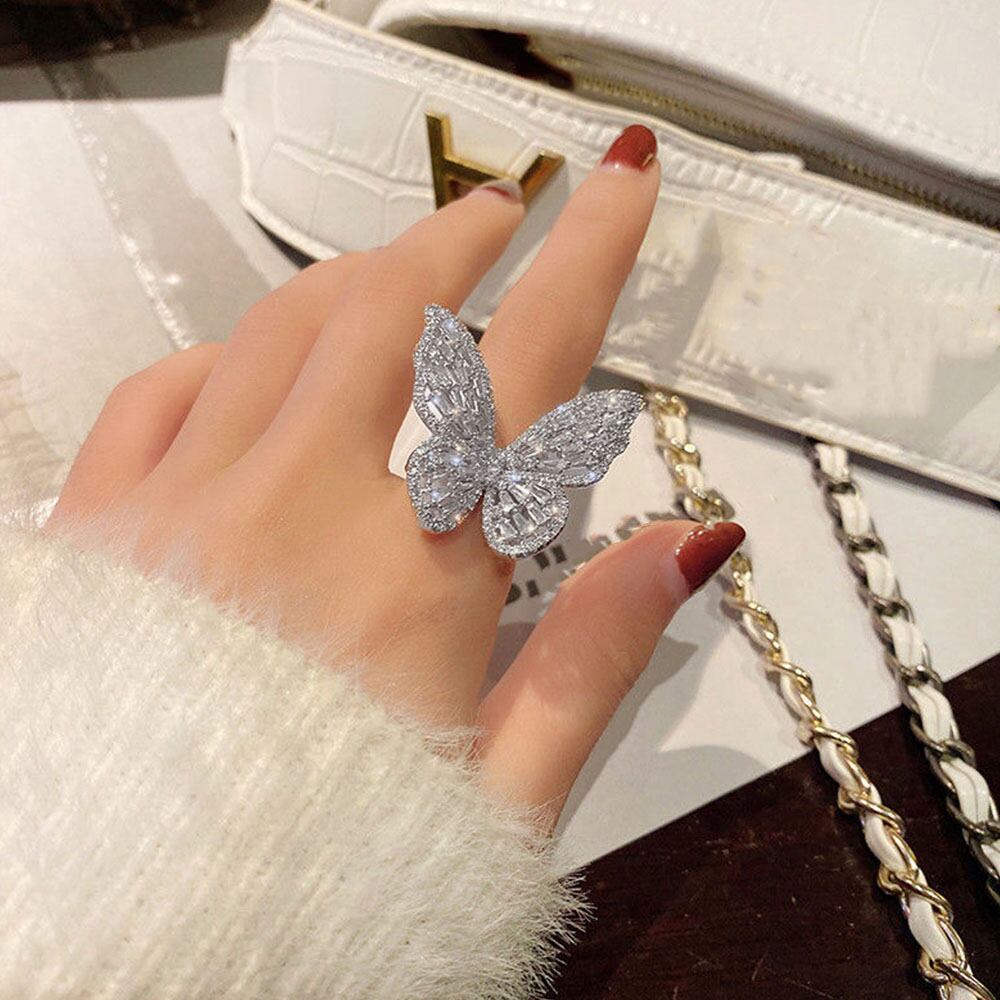 キラキラ ジュエリー 蝶々 人気プレゼント ゴージャス アクセサリー 記念日 フェミニン シルバー 韓国ファッション