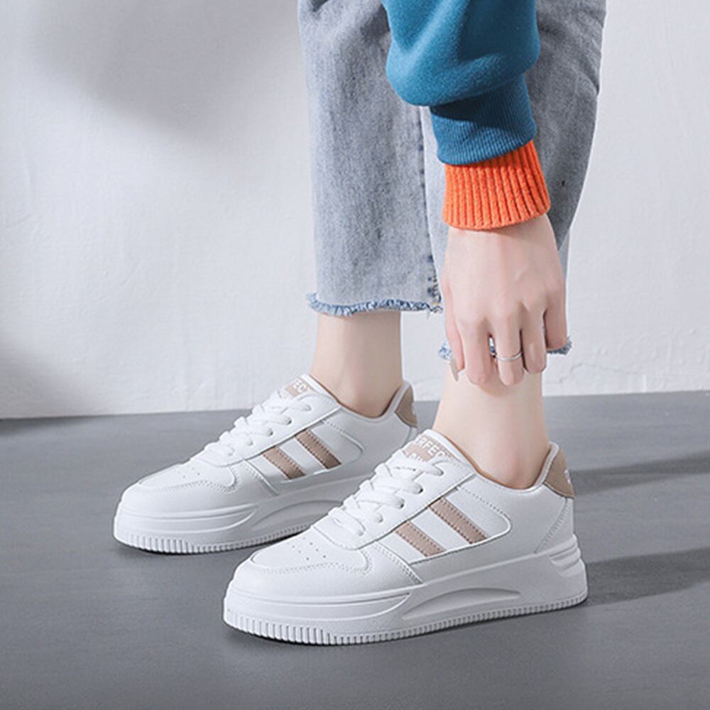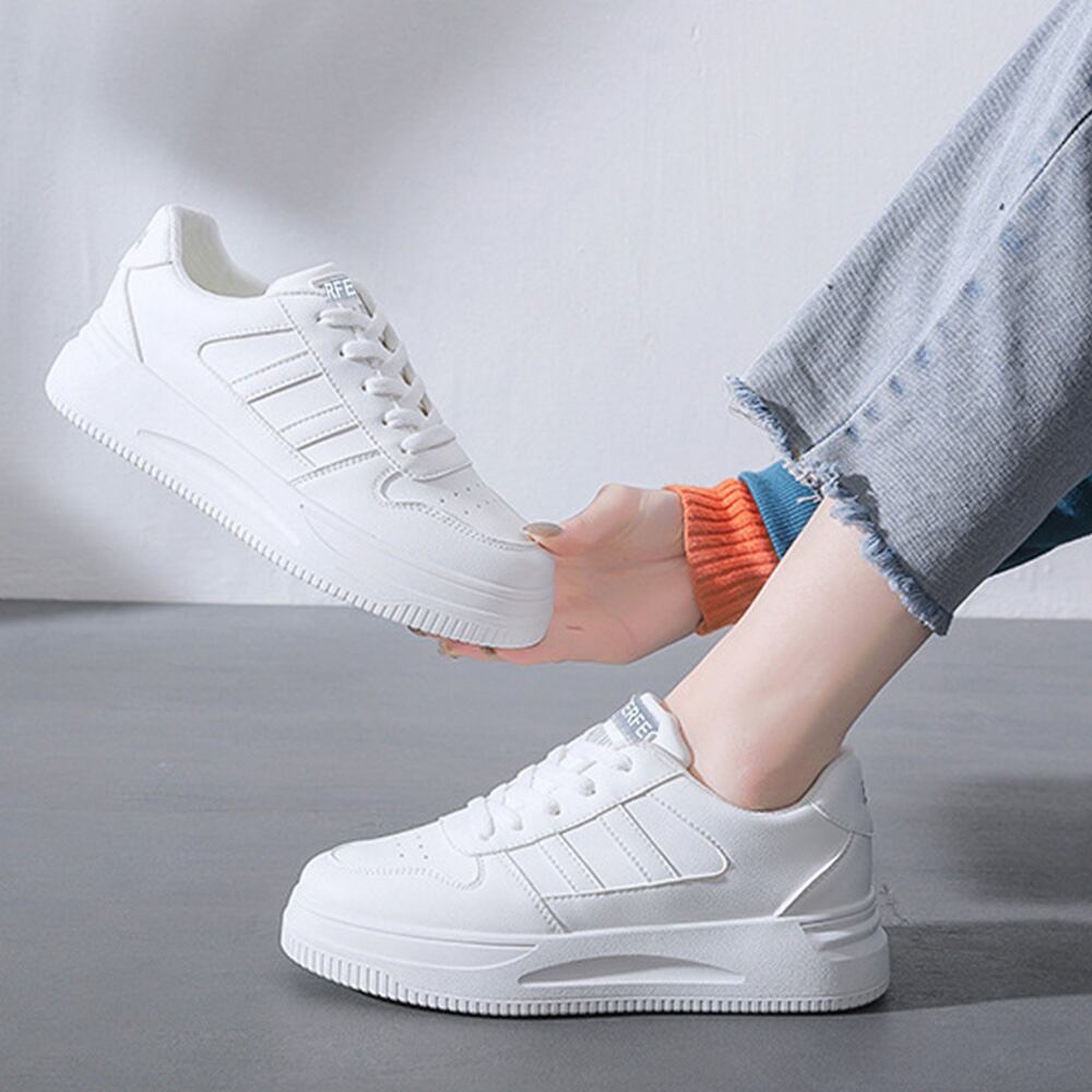 カジュアル フラットシューズ 歩きやすい おしゃれ PUレザースニーカー 通勤通学美脚シューズ レースアップ靴履きやすい