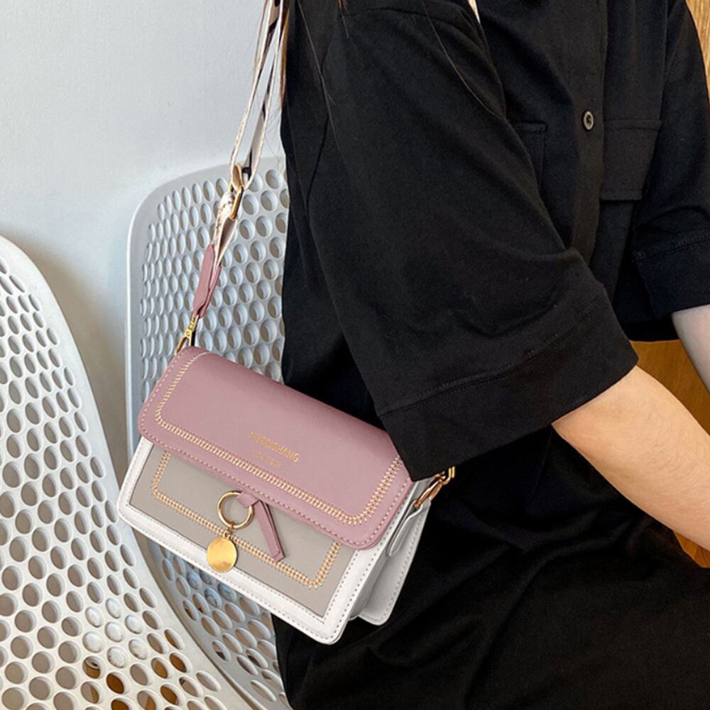 ワイドストラップ バイカラー 韓国スクエアBAG カジュアル 斜めがけバッグ PUレザーメッセンジャーバッグ 大人可愛い