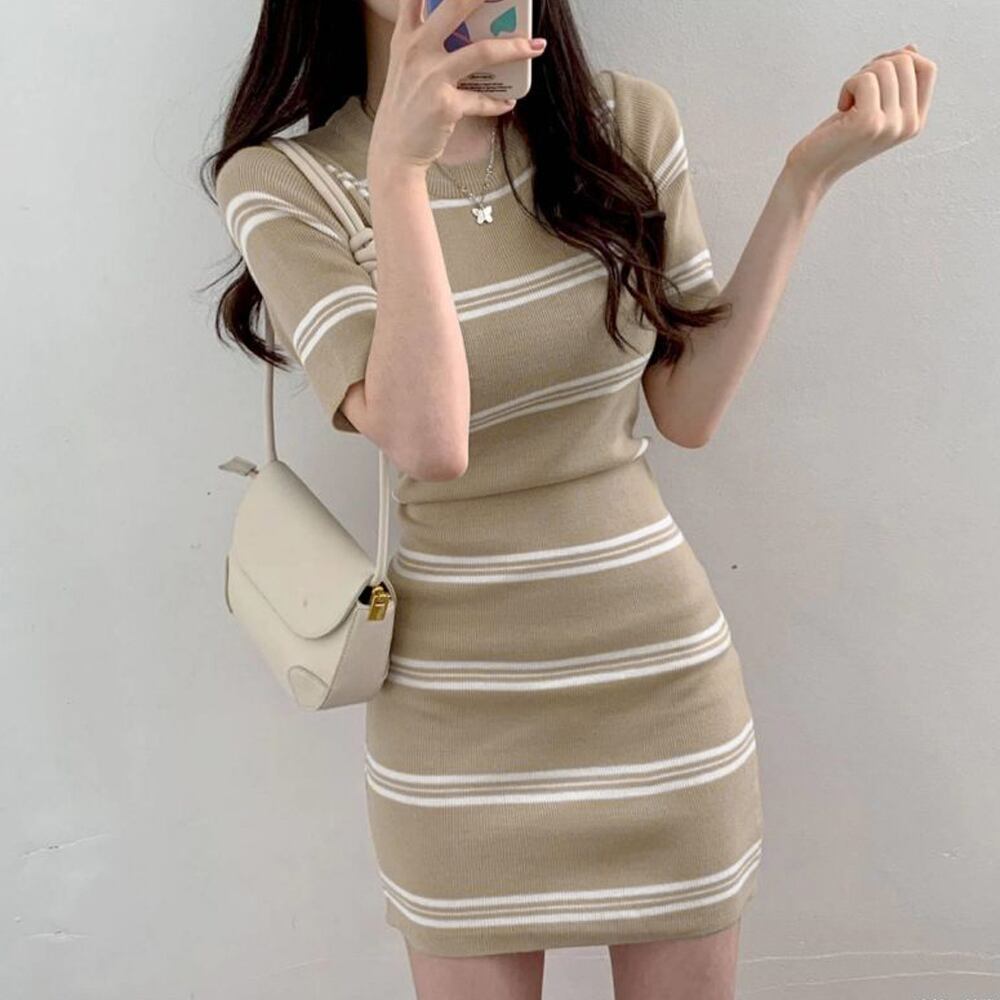 程よく体にフィットしストレートぎみなシルエットが今年らしいサマーニットワンピース