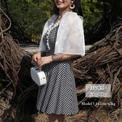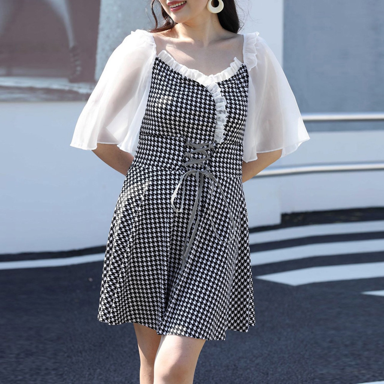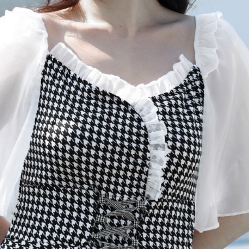 お洒落に体型カバーできる千鳥柄デザインのぽっちゃりワンピース水着