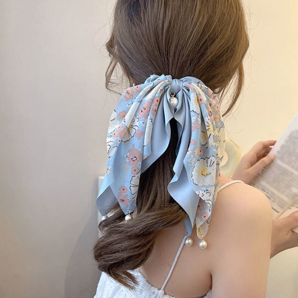 花柄 スカーフシュシュ春夏リボンヘアゴム
