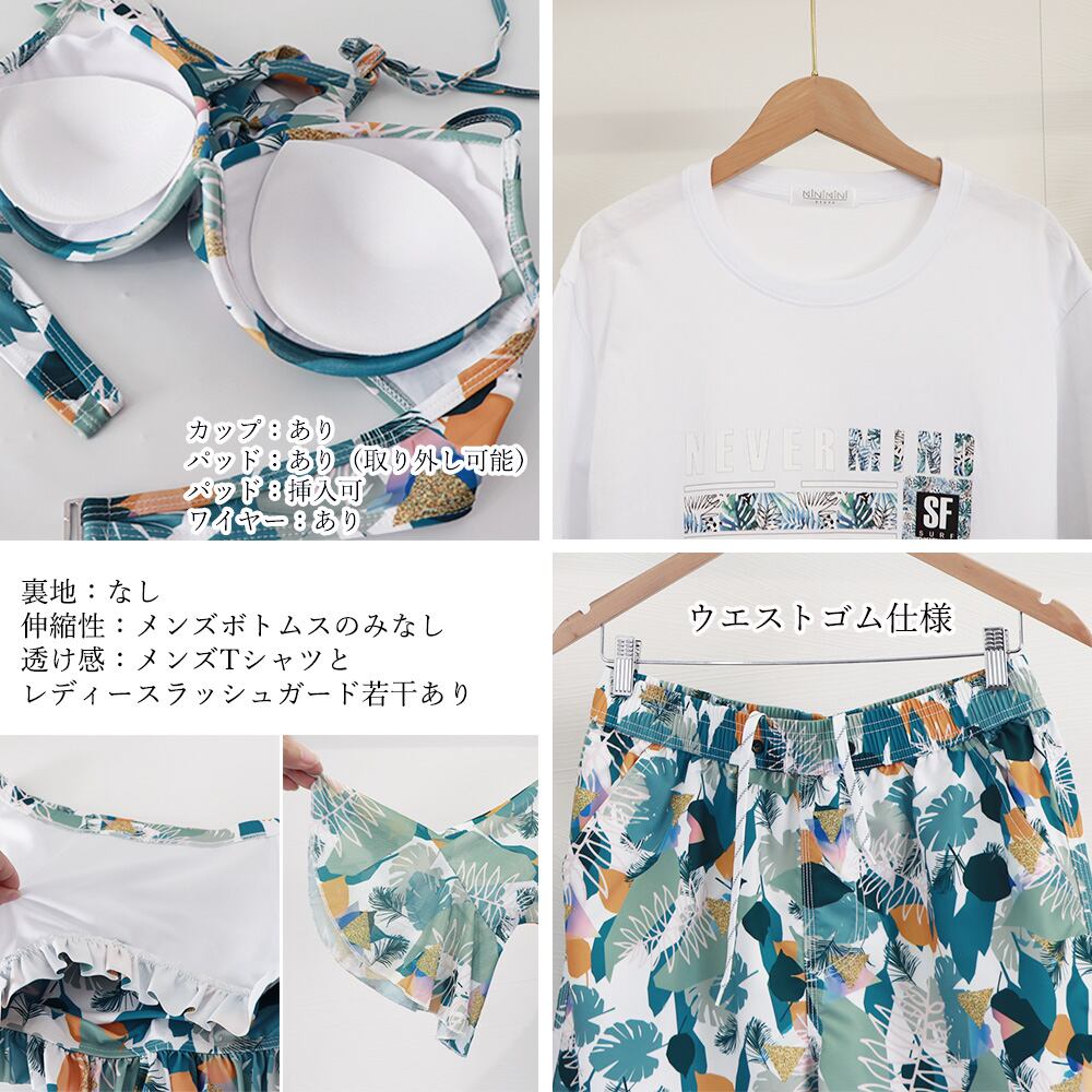 おしゃれ 花柄水着 ペアルック メンズ水着 上下セット レディース水着 3点セット 体型カバー リゾートウェア 新婚旅行