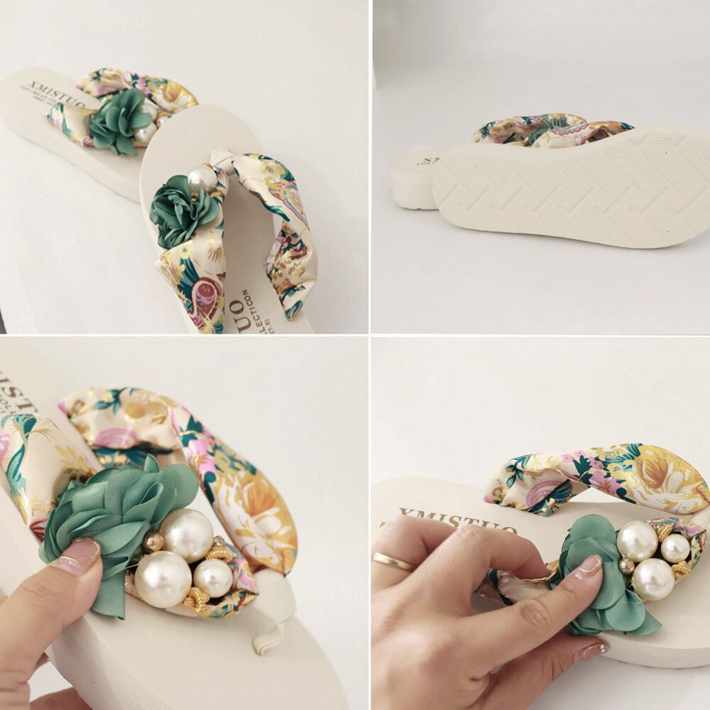 足元を彩るサマーデザイン、華やかなプリント柄、造花やパール飾りがビーチ映え間違いなし、水着はもちろん洋服や浴衣と合わせてもOK