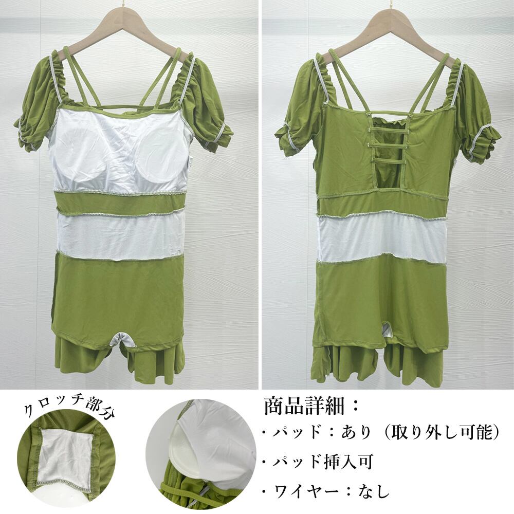 露出控えめ水着 ハイウエスト スイムウェア パフスリーブ ママ水着 体型カバー オールインワン水着 ショートパンツ付き