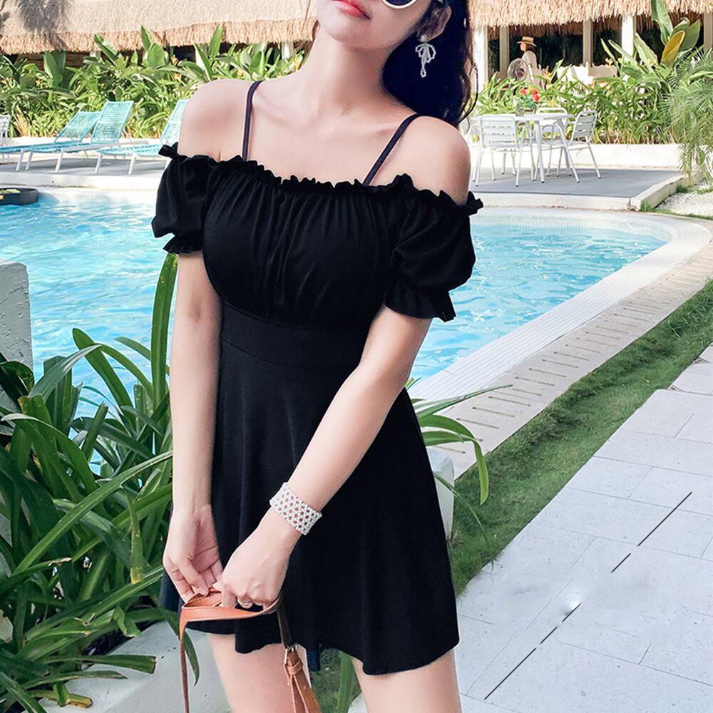 可愛い水着 新作 黒水着 人気 流行 ワンピ海水浴女の子