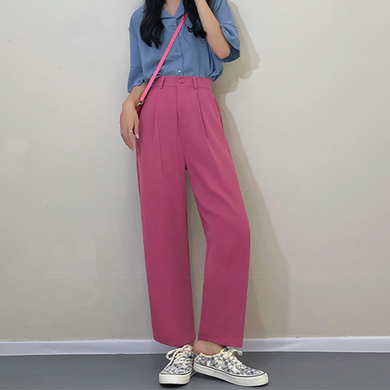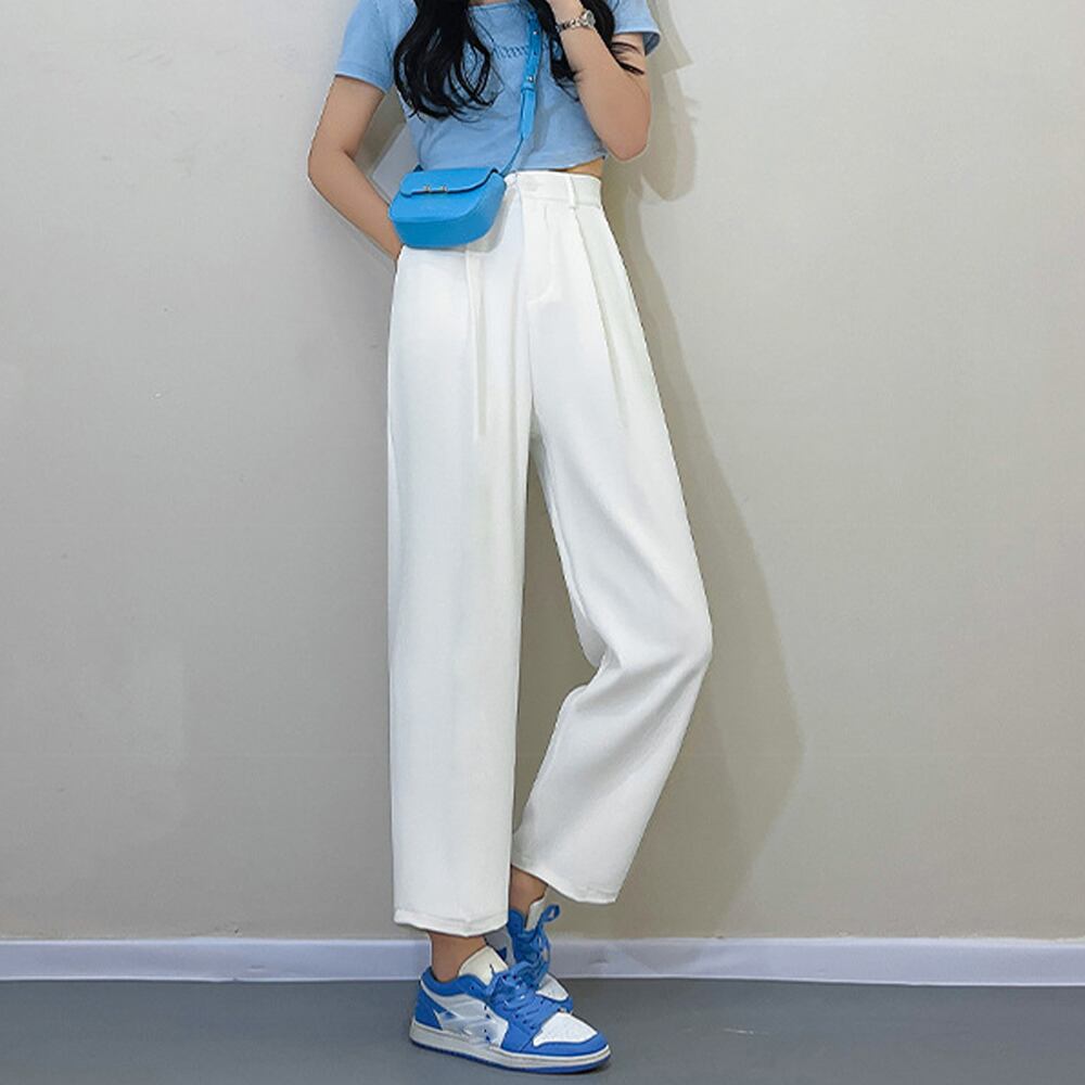 レディースボトムス 韓国 ハイウエスト ストレートパンツ 美脚タックパンツ カジュアル おしゃれ 大人 春夏秋 6色