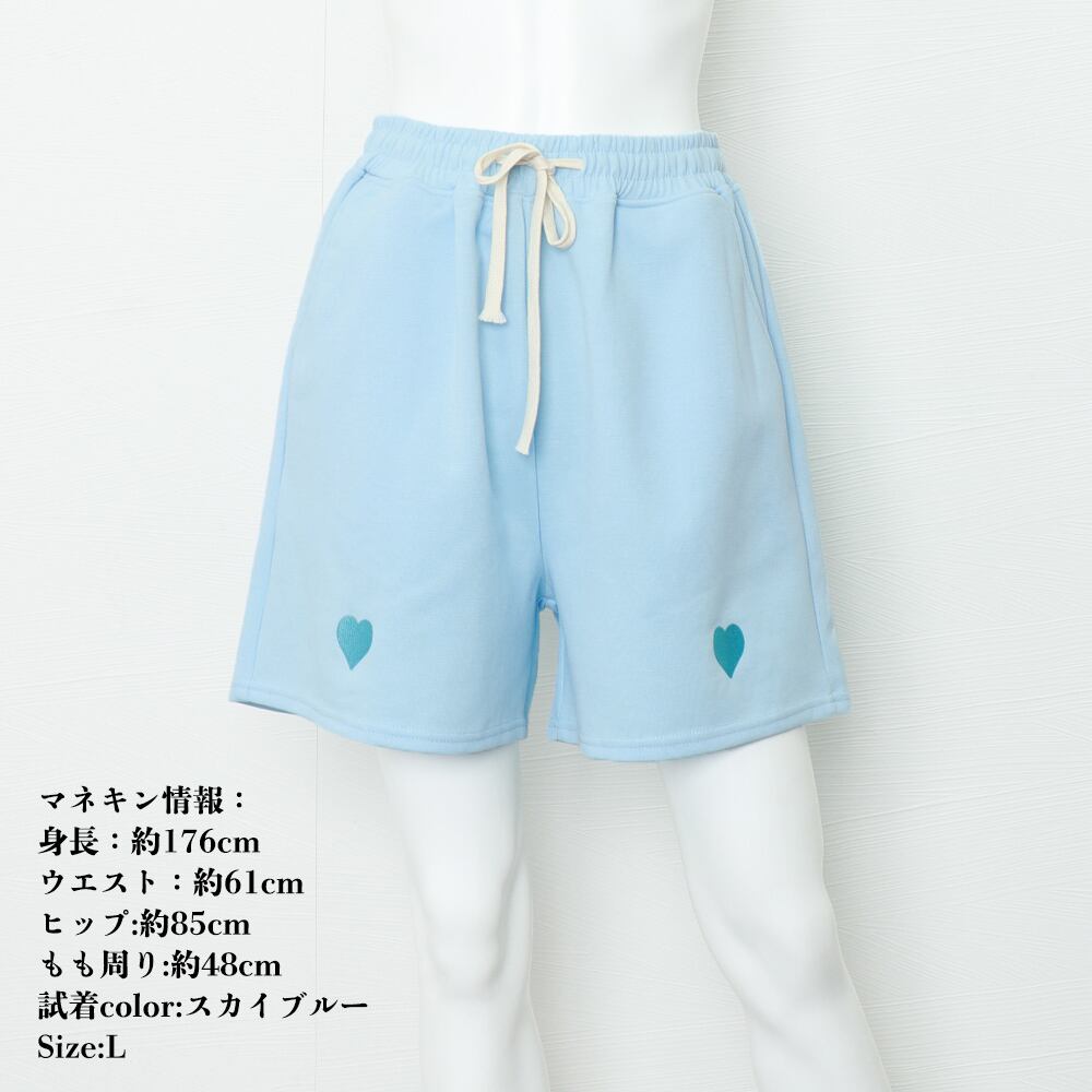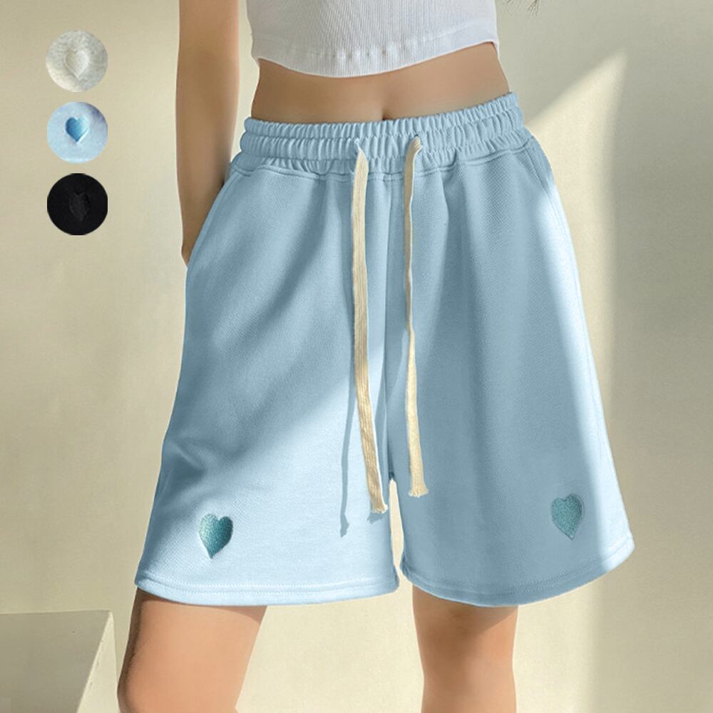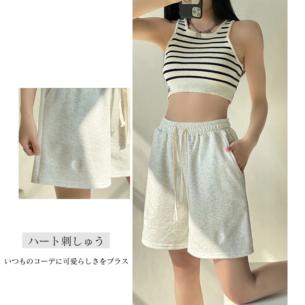 レディースボトムス 韓国 ハート刺しゅう ショーパン ウエストゴム 美脚 可愛い 体型カバー スポーツ ルームウエア 夏