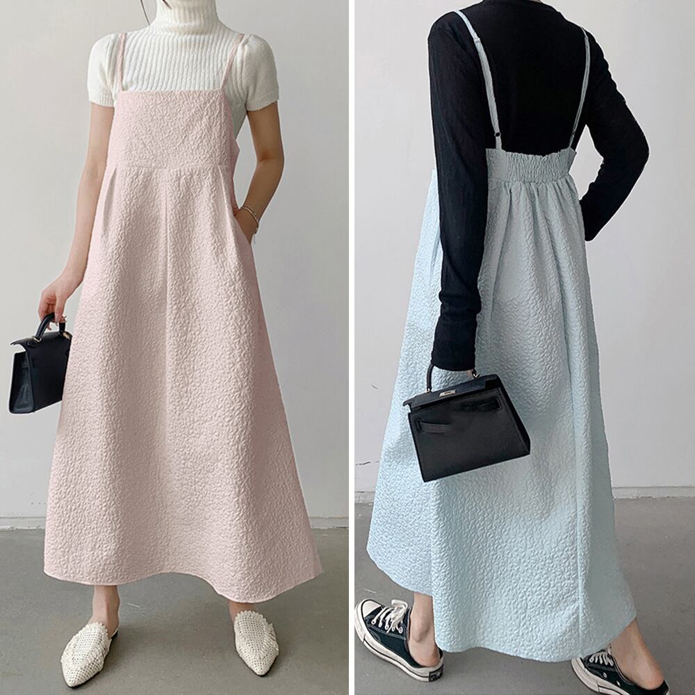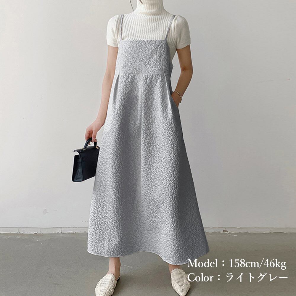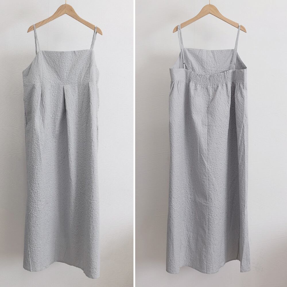 シボ加工サロペット 着やせキャミワンピ カジュアル春夏秋冬