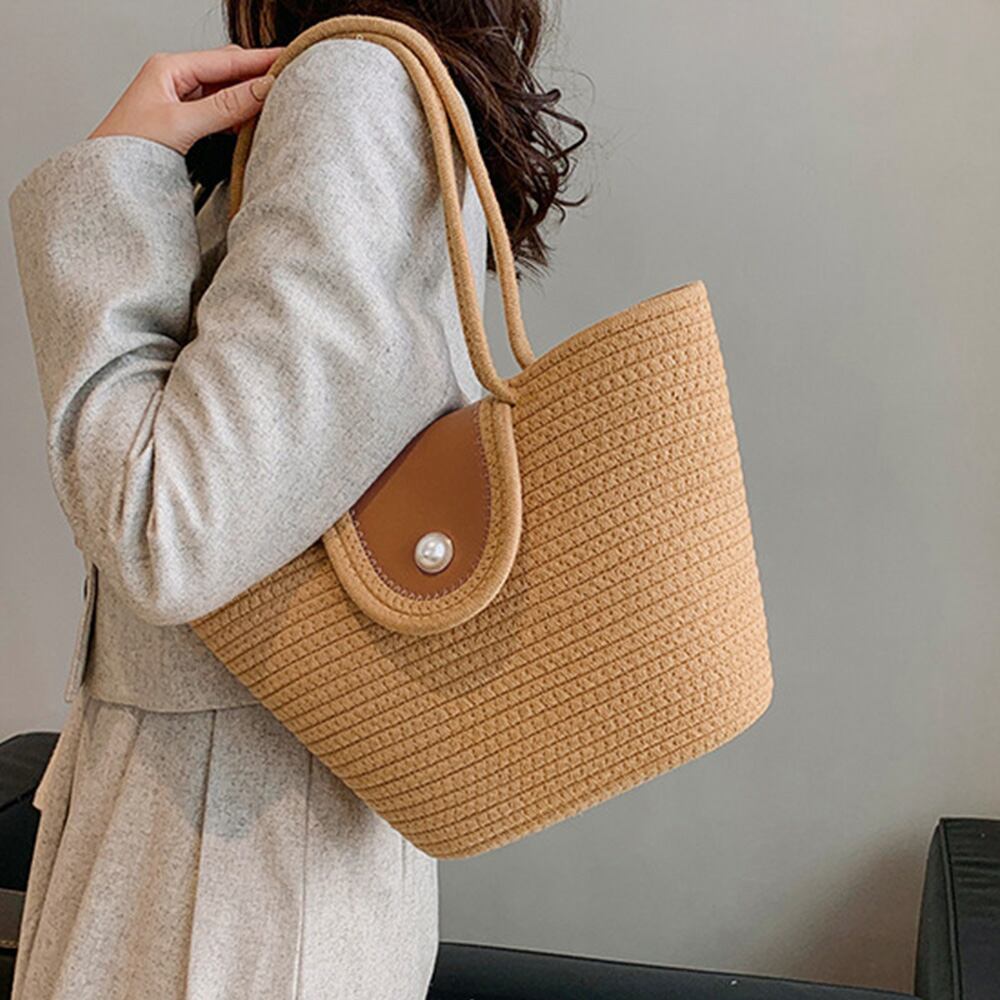 レディース カジュアル ストローバッグ  大人可愛い サマーバケツバッグ おしゃれ 麦わらバッグ 肩掛け 編みバッグ韓国