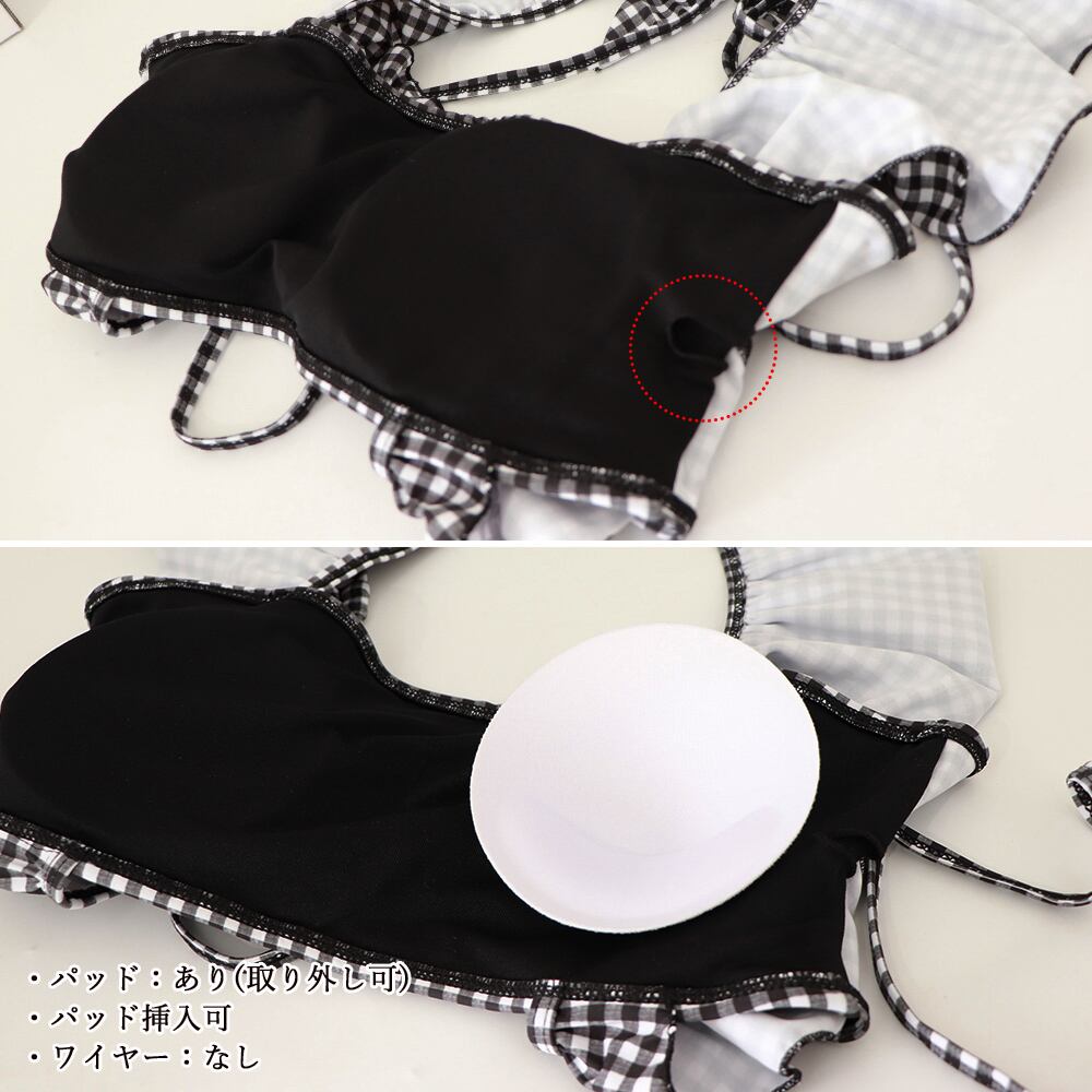 スイムウェアみずぎ 海水浴ビスチェ水着 チェック柄 水着黒