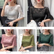 五分袖ブラウス春夏 シースルーインナー 花柄レーストップス