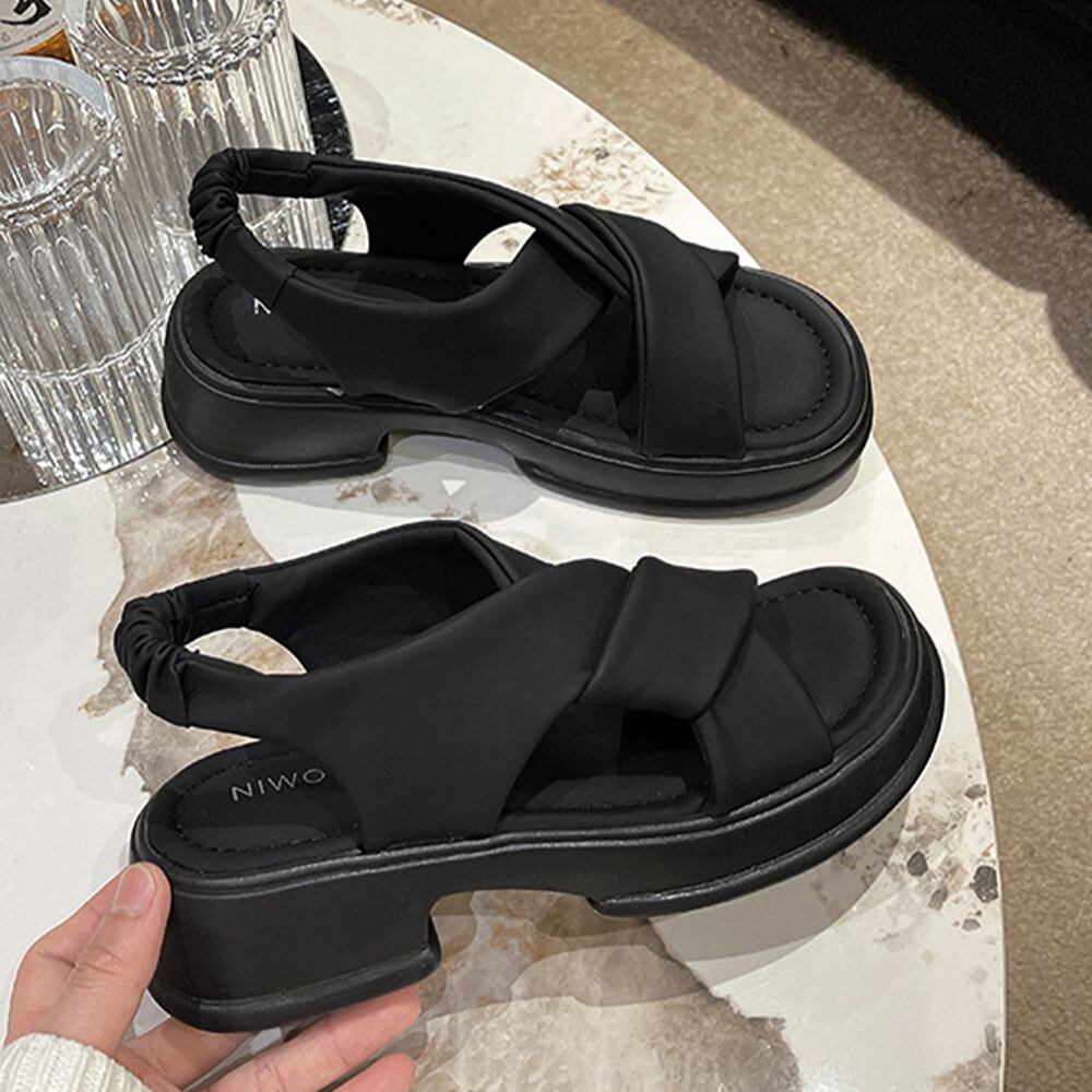 クロスベルトで足をしっかりホールドして履き心地が良い厚底サンダル。
