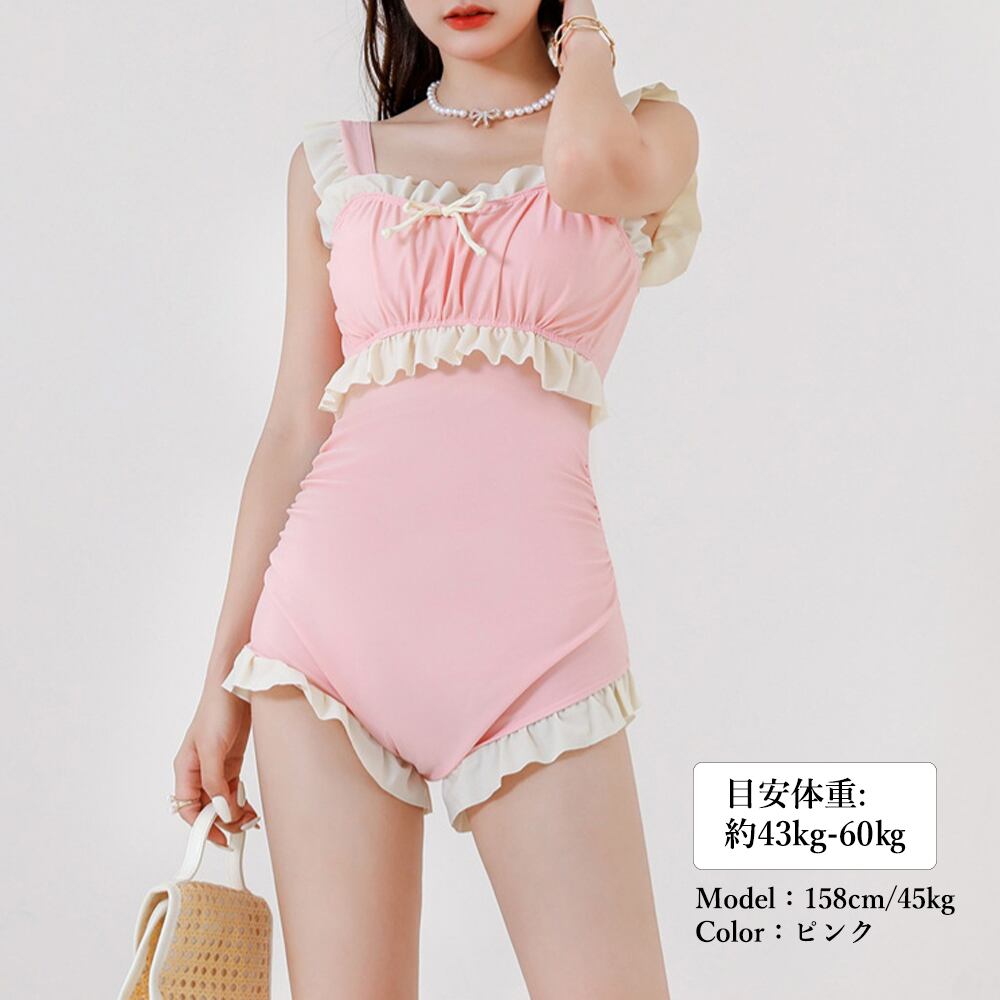 今年トレンド感満載のフリル仕様の韓国風モノキニワンピース水着