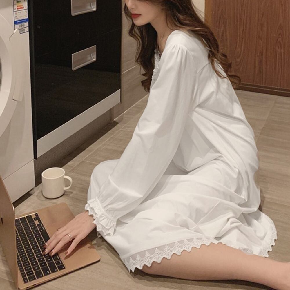 ラウンジウェア長袖 寝間着ワンピ 韓国 ホームウェア楽ちん