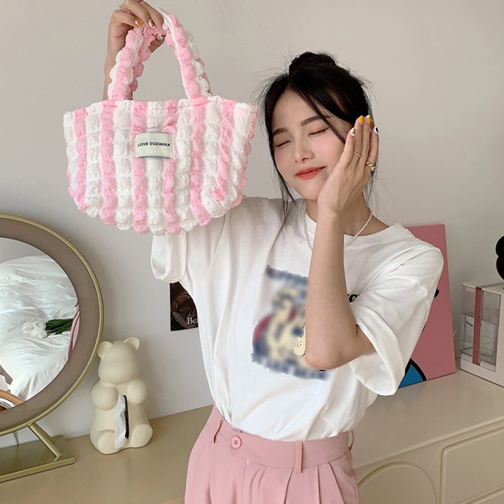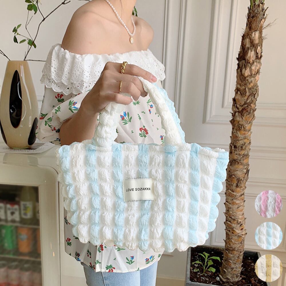 ポコポコとした表面感が可愛らしいポップコーン生地のミニトートバッグ