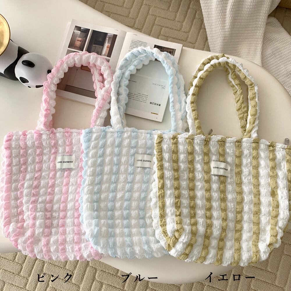 ポコポコバッグ トートバッグ レディース 軽量 ショルダーバッグ おでかけ a4 バッグ 通勤 軽い バッグ ストライプ