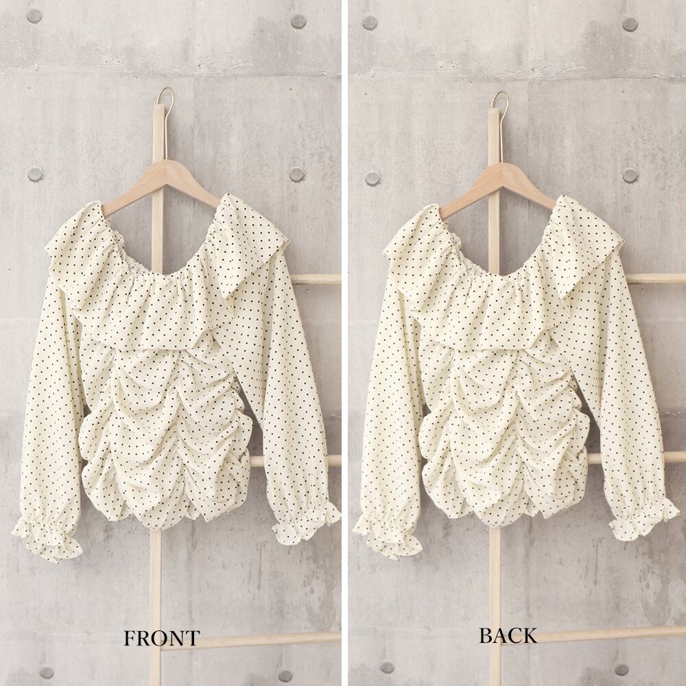 ちょっぴりレトロで、どこか懐かしさが感じられるドット柄ブラウスです