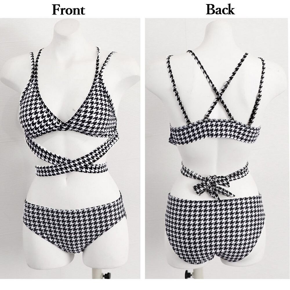 クロスビキニ 千鳥格子水着 セクシー 胸元