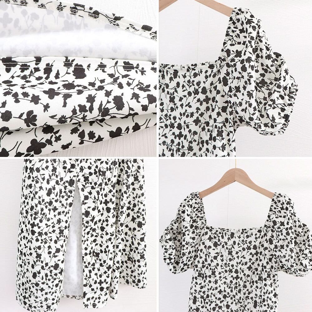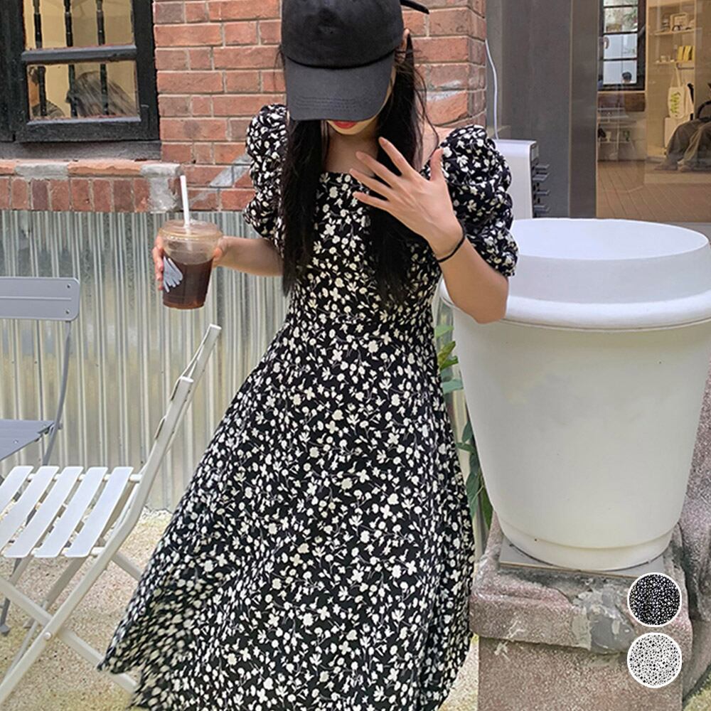 全体に散らばる小花柄が春夏らしい!スクエアネック半袖ワンピース