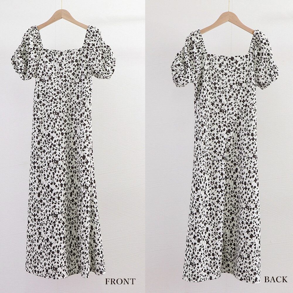 小花柄 ロングワンピース スクエアネック