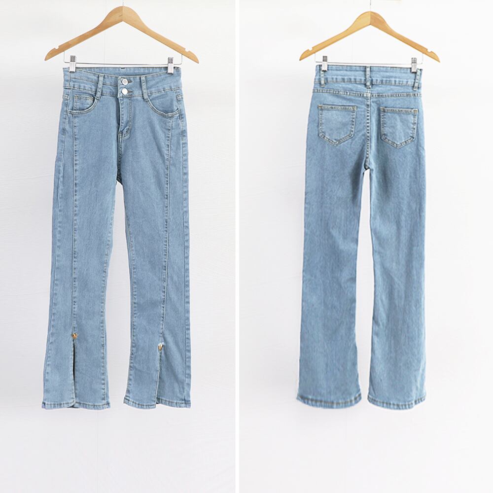 セミフレア デニム Gパンお洒落ズボン ラッパパンツ 美脚